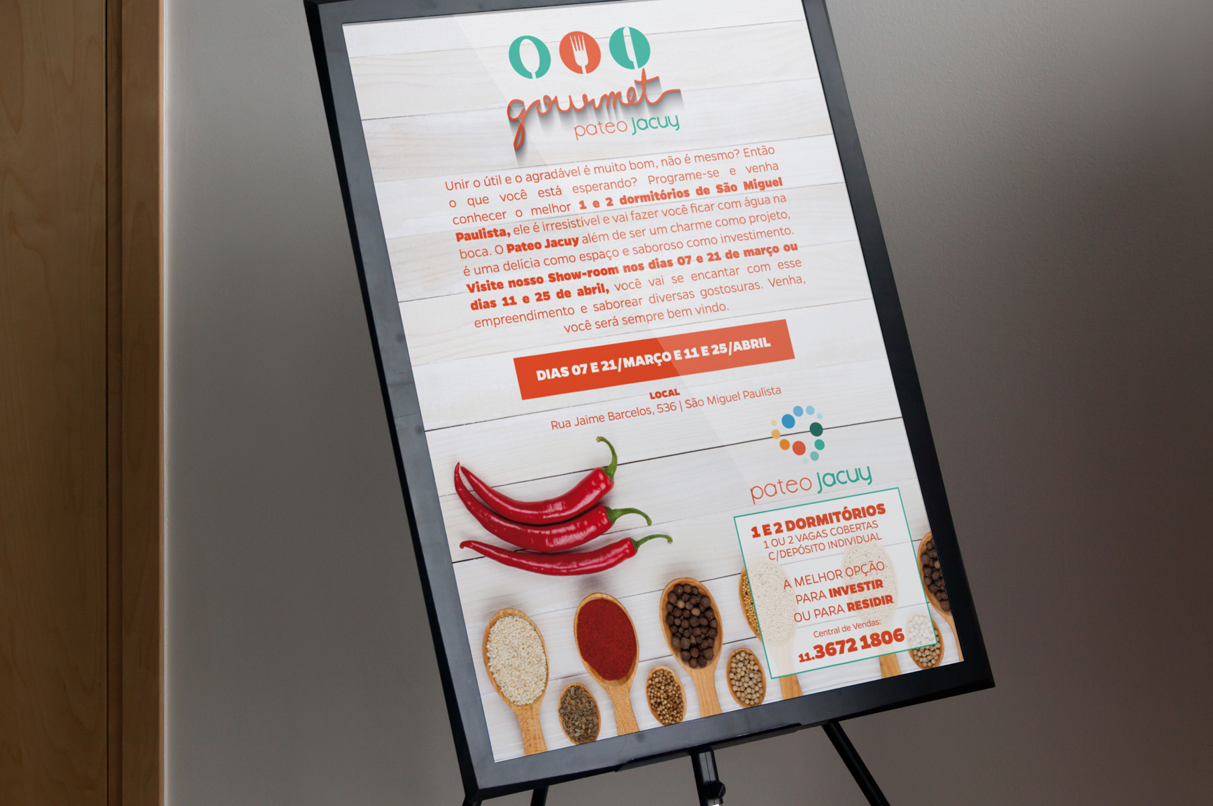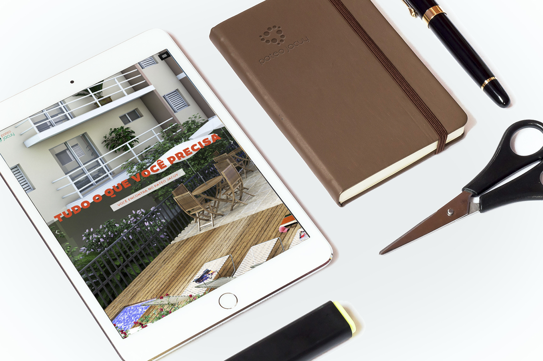 Apesar de estar voltado para o meio digital, a proposta de divulgação do Pateo Jacuy não podia deixar de lado a mídia off-line. Esse material de apoio aos corretores são essenciais, pois mostarm a qualidade do produto oferecido expresso no cuidado todo especial com cada peça, da criação ao fino acabamento.